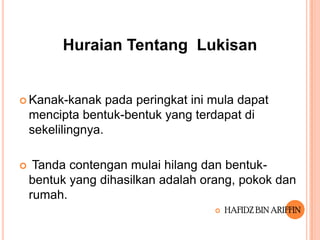 Istilah kanak-kanak adalah berbeza dengan anak meskipun mempunyai. Kematangan pada peringkat ini ialah. Scribbling 2-4 tahun Pada peringkat ini kemampuan kanak-kanak hanya menghasilkan garisan menegak melintang diagonal secara beransur-ansur sehingga menjadi ellipse.